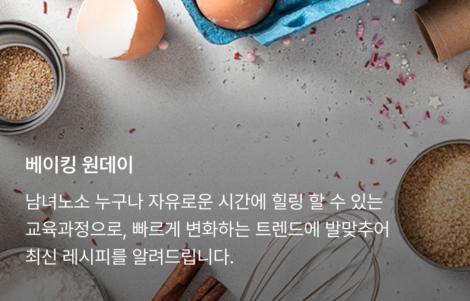 디저트에 대해 폭 넓게 이해하며 테마별로 고퀄리티 메뉴를 배울 수 있어요.