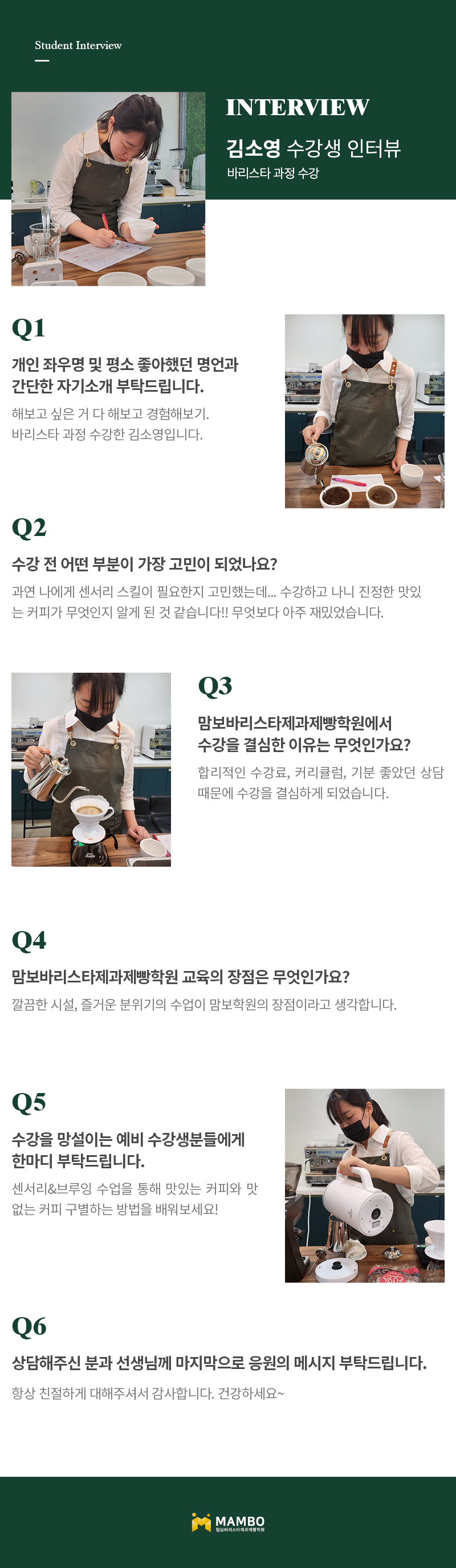 제1조 (개인정보 수집에 대한 동의)맘보교육그룹(이하 회사)는 이용자들이 회사의 개인정보취급방침 또는 이용약관의 내용에 대하여 “동의”버튼 또는 “취소”버튼을 클릭할 수 있는 절차를 마련하여, “동의”버튼을 클릭하면 개인정보 수집에 대해 동의한 것으로 봅니다. 제2조 (개인정보 수집항목) 온라인 문의를 통한 상담을 위해 처리하는 개인정보 항목은 아래와 같습니다. 수집항목 : 성명, 이메일, 전화번호 제3조 (개인정보의 이용목적) 회사는 이용자의 사전 동의 없이는 이용자의 개인 정보를 공개하지 않으며, 원활한 고객상담, 각종 서비스의 제공을 위해 아래와 같이 개인정보를 수집하고 있습니다. 모든 정보는 상기 목적에 필요한 용도 이외로는 사용되지 않으며 수집 정보의 범위나 사용 목적, 용도가 변경될 시에는 반드시 사전 동의를 구할 것입니다. - 성명 : 제품상담에 따른 본인 확인 - 이메일, 전화번호 : 제품상담 및 이벤트 관련 고지사항 전달, 새로운 서비스 및 신상품 정보 제공(DM, SMS, 이메일 등 이용) 이용자는 개인정보의 수집/이용에 대한 동의를 거부할 수 있습니다. 다만, 동의를 거부하는 경우 온라인 문의를 통한 상담은 불가하며 서비스 이용 및 혜택 제공에 제한을 받을 수 있습니다. 제4조 (개인정보의 보유 및 이용기간) 원칙적으로 개인정보 수집 및 이용목적이 달성된 후에는 해당 정보를 지체 없이 파기합니다. 그리고 상법, 전자상거래 등에서의 소비자보호에 관한 법률 등 관계법렵의 규정에 의하여 보존할 필요가 있는 경우 회사는 관계법령에서 정한 일정한 기간 동안 정보를 보관합니다. 이 경우 회사는 보관하는 정보를 그 보관의 목적으로만 이용하며 보존기간은 아래와 같습니다. - 계약 또는 청약철회 등에 관한 기록 : 5년(전자상거래등에서의 소비자보호에 관한 법률) - 소비자의 불만 또는 분쟁처리에 관한 기록 : 3년(전자상거래등에서의 소비자 보호에 관한 법률) - 시용정보의 수집/처리 및 이용 등에 관한 기록 : 3년(신용정보의 이용 및 보호에 관한 법률) - 회사는 귀중한 이용자의 개인정보를 안전하게 처리하며, 유출의 방지를 위하여 다음과 같은 방법을 통하여 개인정보를 파기합니다. - 종이에 출력된 개인정보는 분쇄기로 분쇄하거나 소각을 통하여 파기합니다. - 전자적 파일 형태로 저장된 개인정보는 기록을 재생할 수 없는 기술적 방법을 사용하여 삭제합니다.