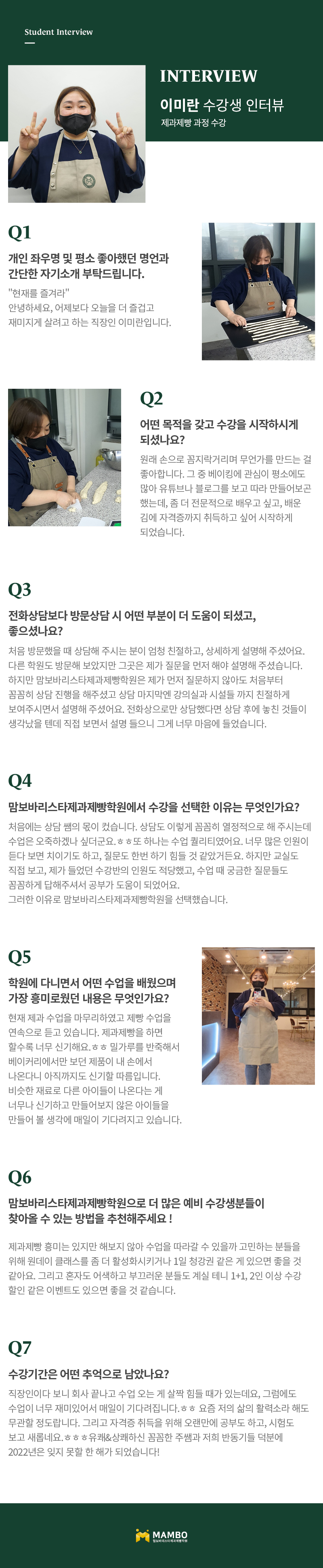제1조 (개인정보 수집에 대한 동의)맘보교육그룹(이하 회사)는 이용자들이 회사의 개인정보취급방침 또는 이용약관의 내용에 대하여 “동의”버튼 또는 “취소”버튼을 클릭할 수 있는 절차를 마련하여, “동의”버튼을 클릭하면 개인정보 수집에 대해 동의한 것으로 봅니다. 제2조 (개인정보 수집항목) 온라인 문의를 통한 상담을 위해 처리하는 개인정보 항목은 아래와 같습니다. 수집항목 : 성명, 이메일, 전화번호 제3조 (개인정보의 이용목적) 회사는 이용자의 사전 동의 없이는 이용자의 개인 정보를 공개하지 않으며, 원활한 고객상담, 각종 서비스의 제공을 위해 아래와 같이 개인정보를 수집하고 있습니다. 모든 정보는 상기 목적에 필요한 용도 이외로는 사용되지 않으며 수집 정보의 범위나 사용 목적, 용도가 변경될 시에는 반드시 사전 동의를 구할 것입니다. - 성명 : 제품상담에 따른 본인 확인 - 이메일, 전화번호 : 제품상담 및 이벤트 관련 고지사항 전달, 새로운 서비스 및 신상품 정보 제공(DM, SMS, 이메일 등 이용) 이용자는 개인정보의 수집/이용에 대한 동의를 거부할 수 있습니다. 다만, 동의를 거부하는 경우 온라인 문의를 통한 상담은 불가하며 서비스 이용 및 혜택 제공에 제한을 받을 수 있습니다. 제4조 (개인정보의 보유 및 이용기간) 원칙적으로 개인정보 수집 및 이용목적이 달성된 후에는 해당 정보를 지체 없이 파기합니다. 그리고 상법, 전자상거래 등에서의 소비자보호에 관한 법률 등 관계법렵의 규정에 의하여 보존할 필요가 있는 경우 회사는 관계법령에서 정한 일정한 기간 동안 정보를 보관합니다. 이 경우 회사는 보관하는 정보를 그 보관의 목적으로만 이용하며 보존기간은 아래와 같습니다. - 계약 또는 청약철회 등에 관한 기록 : 5년(전자상거래등에서의 소비자보호에 관한 법률) - 소비자의 불만 또는 분쟁처리에 관한 기록 : 3년(전자상거래등에서의 소비자 보호에 관한 법률) - 시용정보의 수집/처리 및 이용 등에 관한 기록 : 3년(신용정보의 이용 및 보호에 관한 법률) - 회사는 귀중한 이용자의 개인정보를 안전하게 처리하며, 유출의 방지를 위하여 다음과 같은 방법을 통하여 개인정보를 파기합니다. - 종이에 출력된 개인정보는 분쇄기로 분쇄하거나 소각을 통하여 파기합니다. - 전자적 파일 형태로 저장된 개인정보는 기록을 재생할 수 없는 기술적 방법을 사용하여 삭제합니다.