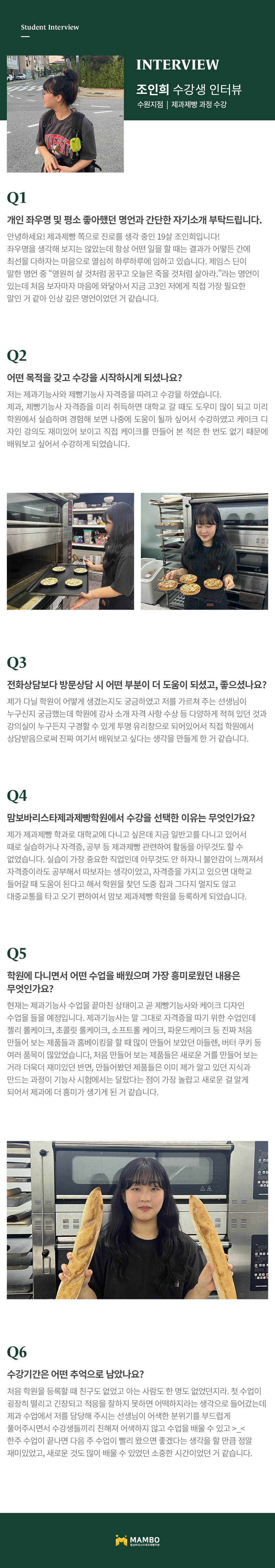 제1조 (개인정보 수집에 대한 동의)맘보교육그룹(이하 회사)는 이용자들이 회사의 개인정보취급방침 또는 이용약관의 내용에 대하여 “동의”버튼 또는 “취소”버튼을 클릭할 수 있는 절차를 마련하여, “동의”버튼을 클릭하면 개인정보 수집에 대해 동의한 것으로 봅니다. 제2조 (개인정보 수집항목) 온라인 문의를 통한 상담을 위해 처리하는 개인정보 항목은 아래와 같습니다. 수집항목 : 성명, 이메일, 전화번호 제3조 (개인정보의 이용목적) 회사는 이용자의 사전 동의 없이는 이용자의 개인 정보를 공개하지 않으며, 원활한 고객상담, 각종 서비스의 제공을 위해 아래와 같이 개인정보를 수집하고 있습니다. 모든 정보는 상기 목적에 필요한 용도 이외로는 사용되지 않으며 수집 정보의 범위나 사용 목적, 용도가 변경될 시에는 반드시 사전 동의를 구할 것입니다. - 성명 : 제품상담에 따른 본인 확인 - 이메일, 전화번호 : 제품상담 및 이벤트 관련 고지사항 전달, 새로운 서비스 및 신상품 정보 제공(DM, SMS, 이메일 등 이용) 이용자는 개인정보의 수집/이용에 대한 동의를 거부할 수 있습니다. 다만, 동의를 거부하는 경우 온라인 문의를 통한 상담은 불가하며 서비스 이용 및 혜택 제공에 제한을 받을 수 있습니다. 제4조 (개인정보의 보유 및 이용기간) 원칙적으로 개인정보 수집 및 이용목적이 달성된 후에는 해당 정보를 지체 없이 파기합니다. 그리고 상법, 전자상거래 등에서의 소비자보호에 관한 법률 등 관계법렵의 규정에 의하여 보존할 필요가 있는 경우 회사는 관계법령에서 정한 일정한 기간 동안 정보를 보관합니다. 이 경우 회사는 보관하는 정보를 그 보관의 목적으로만 이용하며 보존기간은 아래와 같습니다. - 계약 또는 청약철회 등에 관한 기록 : 5년(전자상거래등에서의 소비자보호에 관한 법률) - 소비자의 불만 또는 분쟁처리에 관한 기록 : 3년(전자상거래등에서의 소비자 보호에 관한 법률) - 시용정보의 수집/처리 및 이용 등에 관한 기록 : 3년(신용정보의 이용 및 보호에 관한 법률) - 회사는 귀중한 이용자의 개인정보를 안전하게 처리하며, 유출의 방지를 위하여 다음과 같은 방법을 통하여 개인정보를 파기합니다. - 종이에 출력된 개인정보는 분쇄기로 분쇄하거나 소각을 통하여 파기합니다. - 전자적 파일 형태로 저장된 개인정보는 기록을 재생할 수 없는 기술적 방법을 사용하여 삭제합니다.