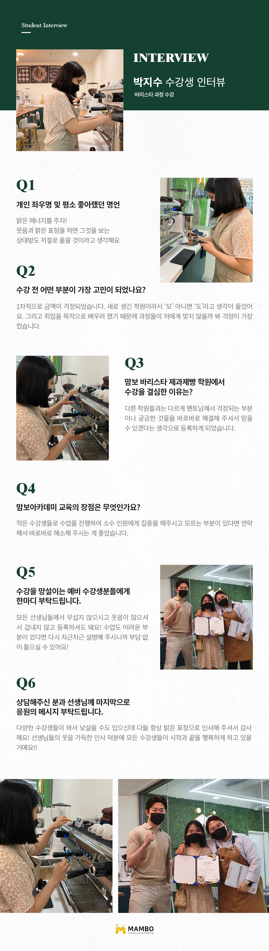제1조 (개인정보 수집에 대한 동의)맘보교육그룹(이하 회사)는 이용자들이 회사의 개인정보취급방침 또는 이용약관의 내용에 대하여 “동의”버튼 또는 “취소”버튼을 클릭할 수 있는 절차를 마련하여, “동의”버튼을 클릭하면 개인정보 수집에 대해 동의한 것으로 봅니다. 제2조 (개인정보 수집항목) 온라인 문의를 통한 상담을 위해 처리하는 개인정보 항목은 아래와 같습니다. 수집항목 : 성명, 이메일, 전화번호 제3조 (개인정보의 이용목적) 회사는 이용자의 사전 동의 없이는 이용자의 개인 정보를 공개하지 않으며, 원활한 고객상담, 각종 서비스의 제공을 위해 아래와 같이 개인정보를 수집하고 있습니다. 모든 정보는 상기 목적에 필요한 용도 이외로는 사용되지 않으며 수집 정보의 범위나 사용 목적, 용도가 변경될 시에는 반드시 사전 동의를 구할 것입니다. - 성명 : 제품상담에 따른 본인 확인 - 이메일, 전화번호 : 제품상담 및 이벤트 관련 고지사항 전달, 새로운 서비스 및 신상품 정보 제공(DM, SMS, 이메일 등 이용) 이용자는 개인정보의 수집/이용에 대한 동의를 거부할 수 있습니다. 다만, 동의를 거부하는 경우 온라인 문의를 통한 상담은 불가하며 서비스 이용 및 혜택 제공에 제한을 받을 수 있습니다. 제4조 (개인정보의 보유 및 이용기간) 원칙적으로 개인정보 수집 및 이용목적이 달성된 후에는 해당 정보를 지체 없이 파기합니다. 그리고 상법, 전자상거래 등에서의 소비자보호에 관한 법률 등 관계법렵의 규정에 의하여 보존할 필요가 있는 경우 회사는 관계법령에서 정한 일정한 기간 동안 정보를 보관합니다. 이 경우 회사는 보관하는 정보를 그 보관의 목적으로만 이용하며 보존기간은 아래와 같습니다. - 계약 또는 청약철회 등에 관한 기록 : 5년(전자상거래등에서의 소비자보호에 관한 법률) - 소비자의 불만 또는 분쟁처리에 관한 기록 : 3년(전자상거래등에서의 소비자 보호에 관한 법률) - 시용정보의 수집/처리 및 이용 등에 관한 기록 : 3년(신용정보의 이용 및 보호에 관한 법률) - 회사는 귀중한 이용자의 개인정보를 안전하게 처리하며, 유출의 방지를 위하여 다음과 같은 방법을 통하여 개인정보를 파기합니다. - 종이에 출력된 개인정보는 분쇄기로 분쇄하거나 소각을 통하여 파기합니다. - 전자적 파일 형태로 저장된 개인정보는 기록을 재생할 수 없는 기술적 방법을 사용하여 삭제합니다.