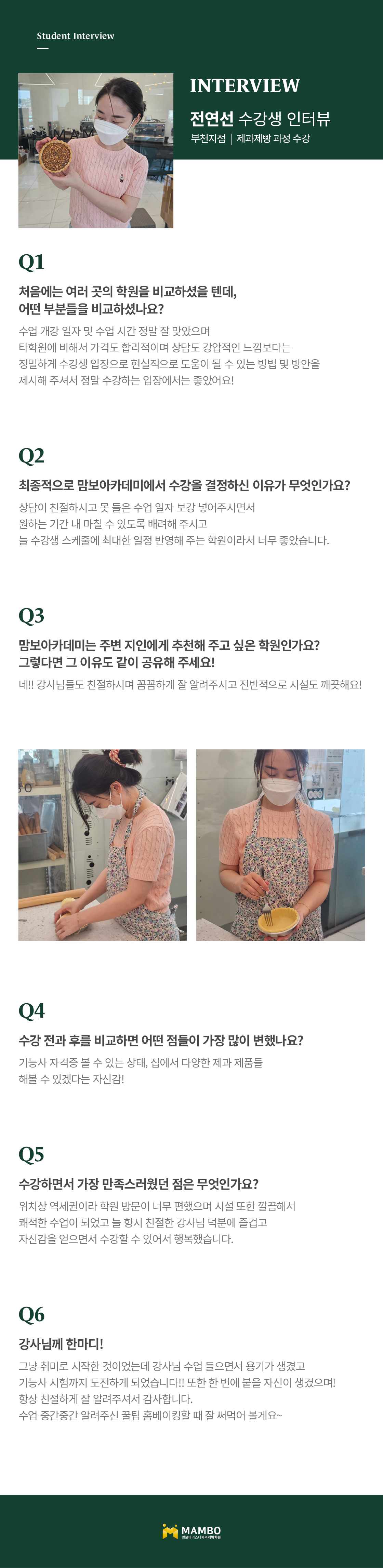 제1조 (개인정보 수집에 대한 동의)맘보교육그룹(이하 회사)는 이용자들이 회사의 개인정보취급방침 또는 이용약관의 내용에 대하여 “동의”버튼 또는 “취소”버튼을 클릭할 수 있는 절차를 마련하여, “동의”버튼을 클릭하면 개인정보 수집에 대해 동의한 것으로 봅니다. 제2조 (개인정보 수집항목) 온라인 문의를 통한 상담을 위해 처리하는 개인정보 항목은 아래와 같습니다. 수집항목 : 성명, 이메일, 전화번호 제3조 (개인정보의 이용목적) 회사는 이용자의 사전 동의 없이는 이용자의 개인 정보를 공개하지 않으며, 원활한 고객상담, 각종 서비스의 제공을 위해 아래와 같이 개인정보를 수집하고 있습니다. 모든 정보는 상기 목적에 필요한 용도 이외로는 사용되지 않으며 수집 정보의 범위나 사용 목적, 용도가 변경될 시에는 반드시 사전 동의를 구할 것입니다. - 성명 : 제품상담에 따른 본인 확인 - 이메일, 전화번호 : 제품상담 및 이벤트 관련 고지사항 전달, 새로운 서비스 및 신상품 정보 제공(DM, SMS, 이메일 등 이용) 이용자는 개인정보의 수집/이용에 대한 동의를 거부할 수 있습니다. 다만, 동의를 거부하는 경우 온라인 문의를 통한 상담은 불가하며 서비스 이용 및 혜택 제공에 제한을 받을 수 있습니다. 제4조 (개인정보의 보유 및 이용기간) 원칙적으로 개인정보 수집 및 이용목적이 달성된 후에는 해당 정보를 지체 없이 파기합니다. 그리고 상법, 전자상거래 등에서의 소비자보호에 관한 법률 등 관계법렵의 규정에 의하여 보존할 필요가 있는 경우 회사는 관계법령에서 정한 일정한 기간 동안 정보를 보관합니다. 이 경우 회사는 보관하는 정보를 그 보관의 목적으로만 이용하며 보존기간은 아래와 같습니다. - 계약 또는 청약철회 등에 관한 기록 : 5년(전자상거래등에서의 소비자보호에 관한 법률) - 소비자의 불만 또는 분쟁처리에 관한 기록 : 3년(전자상거래등에서의 소비자 보호에 관한 법률) - 시용정보의 수집/처리 및 이용 등에 관한 기록 : 3년(신용정보의 이용 및 보호에 관한 법률) - 회사는 귀중한 이용자의 개인정보를 안전하게 처리하며, 유출의 방지를 위하여 다음과 같은 방법을 통하여 개인정보를 파기합니다. - 종이에 출력된 개인정보는 분쇄기로 분쇄하거나 소각을 통하여 파기합니다. - 전자적 파일 형태로 저장된 개인정보는 기록을 재생할 수 없는 기술적 방법을 사용하여 삭제합니다.