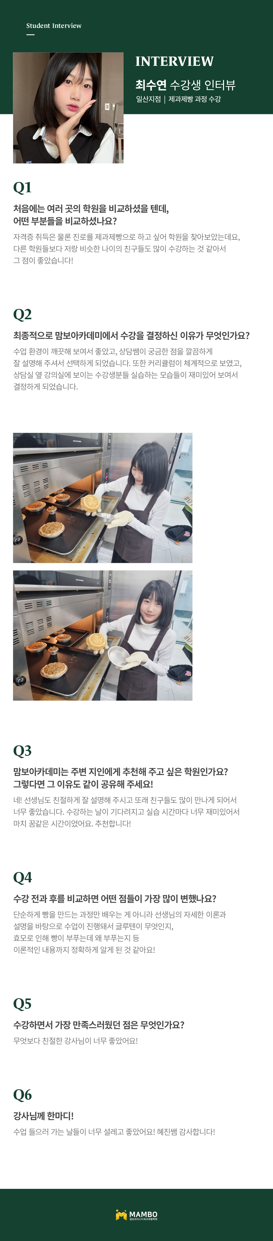 제1조 (개인정보 수집에 대한 동의)맘보교육그룹(이하 회사)는 이용자들이 회사의 개인정보취급방침 또는 이용약관의 내용에 대하여 “동의”버튼 또는 “취소”버튼을 클릭할 수 있는 절차를 마련하여, “동의”버튼을 클릭하면 개인정보 수집에 대해 동의한 것으로 봅니다. 제2조 (개인정보 수집항목) 온라인 문의를 통한 상담을 위해 처리하는 개인정보 항목은 아래와 같습니다. 수집항목 : 성명, 이메일, 전화번호 제3조 (개인정보의 이용목적) 회사는 이용자의 사전 동의 없이는 이용자의 개인 정보를 공개하지 않으며, 원활한 고객상담, 각종 서비스의 제공을 위해 아래와 같이 개인정보를 수집하고 있습니다. 모든 정보는 상기 목적에 필요한 용도 이외로는 사용되지 않으며 수집 정보의 범위나 사용 목적, 용도가 변경될 시에는 반드시 사전 동의를 구할 것입니다. - 성명 : 제품상담에 따른 본인 확인 - 이메일, 전화번호 : 제품상담 및 이벤트 관련 고지사항 전달, 새로운 서비스 및 신상품 정보 제공(DM, SMS, 이메일 등 이용) 이용자는 개인정보의 수집/이용에 대한 동의를 거부할 수 있습니다. 다만, 동의를 거부하는 경우 온라인 문의를 통한 상담은 불가하며 서비스 이용 및 혜택 제공에 제한을 받을 수 있습니다. 제4조 (개인정보의 보유 및 이용기간) 원칙적으로 개인정보 수집 및 이용목적이 달성된 후에는 해당 정보를 지체 없이 파기합니다. 그리고 상법, 전자상거래 등에서의 소비자보호에 관한 법률 등 관계법렵의 규정에 의하여 보존할 필요가 있는 경우 회사는 관계법령에서 정한 일정한 기간 동안 정보를 보관합니다. 이 경우 회사는 보관하는 정보를 그 보관의 목적으로만 이용하며 보존기간은 아래와 같습니다. - 계약 또는 청약철회 등에 관한 기록 : 5년(전자상거래등에서의 소비자보호에 관한 법률) - 소비자의 불만 또는 분쟁처리에 관한 기록 : 3년(전자상거래등에서의 소비자 보호에 관한 법률) - 시용정보의 수집/처리 및 이용 등에 관한 기록 : 3년(신용정보의 이용 및 보호에 관한 법률) - 회사는 귀중한 이용자의 개인정보를 안전하게 처리하며, 유출의 방지를 위하여 다음과 같은 방법을 통하여 개인정보를 파기합니다. - 종이에 출력된 개인정보는 분쇄기로 분쇄하거나 소각을 통하여 파기합니다. - 전자적 파일 형태로 저장된 개인정보는 기록을 재생할 수 없는 기술적 방법을 사용하여 삭제합니다.
