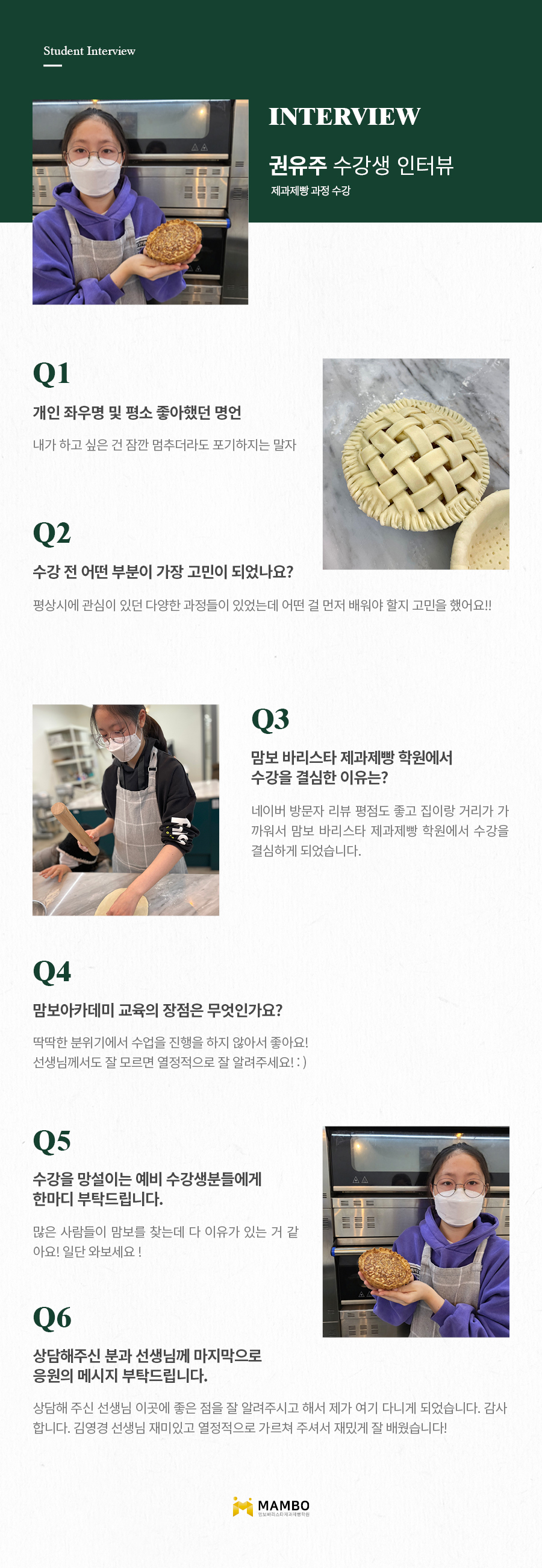 제1조 (개인정보 수집에 대한 동의)맘보교육그룹(이하 회사)는 이용자들이 회사의 개인정보취급방침 또는 이용약관의 내용에 대하여 “동의”버튼 또는 “취소”버튼을 클릭할 수 있는 절차를 마련하여, “동의”버튼을 클릭하면 개인정보 수집에 대해 동의한 것으로 봅니다. 제2조 (개인정보 수집항목) 온라인 문의를 통한 상담을 위해 처리하는 개인정보 항목은 아래와 같습니다. 수집항목 : 성명, 이메일, 전화번호 제3조 (개인정보의 이용목적) 회사는 이용자의 사전 동의 없이는 이용자의 개인 정보를 공개하지 않으며, 원활한 고객상담, 각종 서비스의 제공을 위해 아래와 같이 개인정보를 수집하고 있습니다. 모든 정보는 상기 목적에 필요한 용도 이외로는 사용되지 않으며 수집 정보의 범위나 사용 목적, 용도가 변경될 시에는 반드시 사전 동의를 구할 것입니다. - 성명 : 제품상담에 따른 본인 확인 - 이메일, 전화번호 : 제품상담 및 이벤트 관련 고지사항 전달, 새로운 서비스 및 신상품 정보 제공(DM, SMS, 이메일 등 이용) 이용자는 개인정보의 수집/이용에 대한 동의를 거부할 수 있습니다. 다만, 동의를 거부하는 경우 온라인 문의를 통한 상담은 불가하며 서비스 이용 및 혜택 제공에 제한을 받을 수 있습니다. 제4조 (개인정보의 보유 및 이용기간) 원칙적으로 개인정보 수집 및 이용목적이 달성된 후에는 해당 정보를 지체 없이 파기합니다. 그리고 상법, 전자상거래 등에서의 소비자보호에 관한 법률 등 관계법렵의 규정에 의하여 보존할 필요가 있는 경우 회사는 관계법령에서 정한 일정한 기간 동안 정보를 보관합니다. 이 경우 회사는 보관하는 정보를 그 보관의 목적으로만 이용하며 보존기간은 아래와 같습니다. - 계약 또는 청약철회 등에 관한 기록 : 5년(전자상거래등에서의 소비자보호에 관한 법률) - 소비자의 불만 또는 분쟁처리에 관한 기록 : 3년(전자상거래등에서의 소비자 보호에 관한 법률) - 시용정보의 수집/처리 및 이용 등에 관한 기록 : 3년(신용정보의 이용 및 보호에 관한 법률) - 회사는 귀중한 이용자의 개인정보를 안전하게 처리하며, 유출의 방지를 위하여 다음과 같은 방법을 통하여 개인정보를 파기합니다. - 종이에 출력된 개인정보는 분쇄기로 분쇄하거나 소각을 통하여 파기합니다. - 전자적 파일 형태로 저장된 개인정보는 기록을 재생할 수 없는 기술적 방법을 사용하여 삭제합니다.