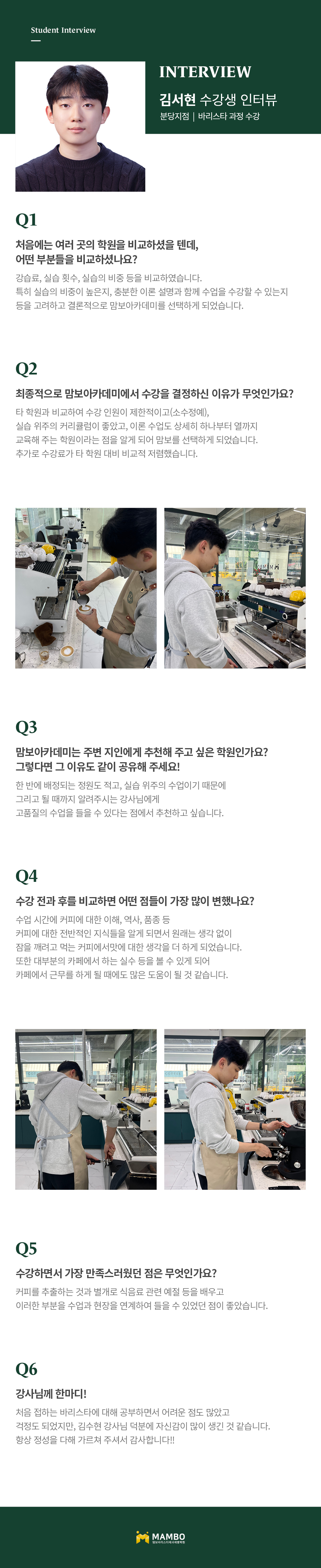 제1조 (개인정보 수집에 대한 동의)맘보교육그룹(이하 회사)는 이용자들이 회사의 개인정보취급방침 또는 이용약관의 내용에 대하여 “동의”버튼 또는 “취소”버튼을 클릭할 수 있는 절차를 마련하여, “동의”버튼을 클릭하면 개인정보 수집에 대해 동의한 것으로 봅니다. 제2조 (개인정보 수집항목) 온라인 문의를 통한 상담을 위해 처리하는 개인정보 항목은 아래와 같습니다. 수집항목 : 성명, 이메일, 전화번호 제3조 (개인정보의 이용목적) 회사는 이용자의 사전 동의 없이는 이용자의 개인 정보를 공개하지 않으며, 원활한 고객상담, 각종 서비스의 제공을 위해 아래와 같이 개인정보를 수집하고 있습니다. 모든 정보는 상기 목적에 필요한 용도 이외로는 사용되지 않으며 수집 정보의 범위나 사용 목적, 용도가 변경될 시에는 반드시 사전 동의를 구할 것입니다. - 성명 : 제품상담에 따른 본인 확인 - 이메일, 전화번호 : 제품상담 및 이벤트 관련 고지사항 전달, 새로운 서비스 및 신상품 정보 제공(DM, SMS, 이메일 등 이용) 이용자는 개인정보의 수집/이용에 대한 동의를 거부할 수 있습니다. 다만, 동의를 거부하는 경우 온라인 문의를 통한 상담은 불가하며 서비스 이용 및 혜택 제공에 제한을 받을 수 있습니다. 제4조 (개인정보의 보유 및 이용기간) 원칙적으로 개인정보 수집 및 이용목적이 달성된 후에는 해당 정보를 지체 없이 파기합니다. 그리고 상법, 전자상거래 등에서의 소비자보호에 관한 법률 등 관계법렵의 규정에 의하여 보존할 필요가 있는 경우 회사는 관계법령에서 정한 일정한 기간 동안 정보를 보관합니다. 이 경우 회사는 보관하는 정보를 그 보관의 목적으로만 이용하며 보존기간은 아래와 같습니다. - 계약 또는 청약철회 등에 관한 기록 : 5년(전자상거래등에서의 소비자보호에 관한 법률) - 소비자의 불만 또는 분쟁처리에 관한 기록 : 3년(전자상거래등에서의 소비자 보호에 관한 법률) - 시용정보의 수집/처리 및 이용 등에 관한 기록 : 3년(신용정보의 이용 및 보호에 관한 법률) - 회사는 귀중한 이용자의 개인정보를 안전하게 처리하며, 유출의 방지를 위하여 다음과 같은 방법을 통하여 개인정보를 파기합니다. - 종이에 출력된 개인정보는 분쇄기로 분쇄하거나 소각을 통하여 파기합니다. - 전자적 파일 형태로 저장된 개인정보는 기록을 재생할 수 없는 기술적 방법을 사용하여 삭제합니다.