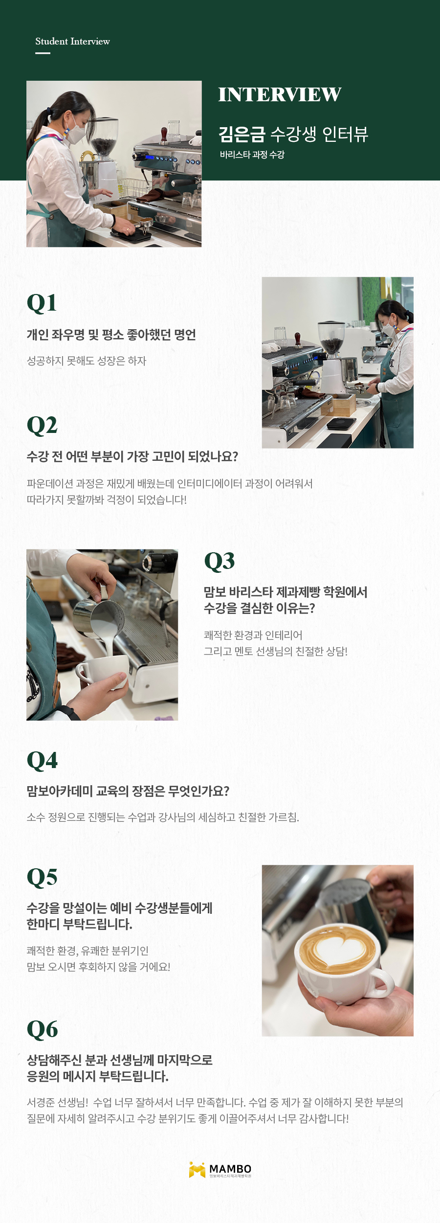 제1조 (개인정보 수집에 대한 동의)맘보교육그룹(이하 회사)는 이용자들이 회사의 개인정보취급방침 또는 이용약관의 내용에 대하여 “동의”버튼 또는 “취소”버튼을 클릭할 수 있는 절차를 마련하여, “동의”버튼을 클릭하면 개인정보 수집에 대해 동의한 것으로 봅니다. 제2조 (개인정보 수집항목) 온라인 문의를 통한 상담을 위해 처리하는 개인정보 항목은 아래와 같습니다. 수집항목 : 성명, 이메일, 전화번호 제3조 (개인정보의 이용목적) 회사는 이용자의 사전 동의 없이는 이용자의 개인 정보를 공개하지 않으며, 원활한 고객상담, 각종 서비스의 제공을 위해 아래와 같이 개인정보를 수집하고 있습니다. 모든 정보는 상기 목적에 필요한 용도 이외로는 사용되지 않으며 수집 정보의 범위나 사용 목적, 용도가 변경될 시에는 반드시 사전 동의를 구할 것입니다. - 성명 : 제품상담에 따른 본인 확인 - 이메일, 전화번호 : 제품상담 및 이벤트 관련 고지사항 전달, 새로운 서비스 및 신상품 정보 제공(DM, SMS, 이메일 등 이용) 이용자는 개인정보의 수집/이용에 대한 동의를 거부할 수 있습니다. 다만, 동의를 거부하는 경우 온라인 문의를 통한 상담은 불가하며 서비스 이용 및 혜택 제공에 제한을 받을 수 있습니다. 제4조 (개인정보의 보유 및 이용기간) 원칙적으로 개인정보 수집 및 이용목적이 달성된 후에는 해당 정보를 지체 없이 파기합니다. 그리고 상법, 전자상거래 등에서의 소비자보호에 관한 법률 등 관계법렵의 규정에 의하여 보존할 필요가 있는 경우 회사는 관계법령에서 정한 일정한 기간 동안 정보를 보관합니다. 이 경우 회사는 보관하는 정보를 그 보관의 목적으로만 이용하며 보존기간은 아래와 같습니다. - 계약 또는 청약철회 등에 관한 기록 : 5년(전자상거래등에서의 소비자보호에 관한 법률) - 소비자의 불만 또는 분쟁처리에 관한 기록 : 3년(전자상거래등에서의 소비자 보호에 관한 법률) - 시용정보의 수집/처리 및 이용 등에 관한 기록 : 3년(신용정보의 이용 및 보호에 관한 법률) - 회사는 귀중한 이용자의 개인정보를 안전하게 처리하며, 유출의 방지를 위하여 다음과 같은 방법을 통하여 개인정보를 파기합니다. - 종이에 출력된 개인정보는 분쇄기로 분쇄하거나 소각을 통하여 파기합니다. - 전자적 파일 형태로 저장된 개인정보는 기록을 재생할 수 없는 기술적 방법을 사용하여 삭제합니다.