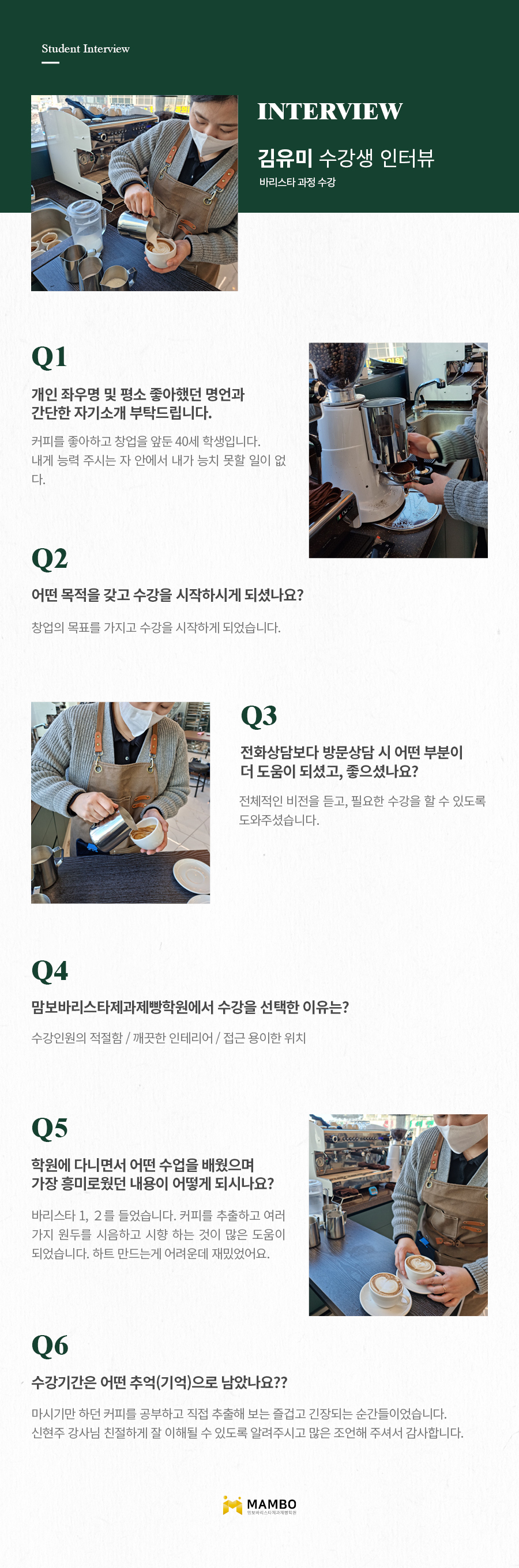 제1조 (개인정보 수집에 대한 동의)맘보교육그룹(이하 회사)는 이용자들이 회사의 개인정보취급방침 또는 이용약관의 내용에 대하여 “동의”버튼 또는 “취소”버튼을 클릭할 수 있는 절차를 마련하여, “동의”버튼을 클릭하면 개인정보 수집에 대해 동의한 것으로 봅니다. 제2조 (개인정보 수집항목) 온라인 문의를 통한 상담을 위해 처리하는 개인정보 항목은 아래와 같습니다. 수집항목 : 성명, 이메일, 전화번호 제3조 (개인정보의 이용목적) 회사는 이용자의 사전 동의 없이는 이용자의 개인 정보를 공개하지 않으며, 원활한 고객상담, 각종 서비스의 제공을 위해 아래와 같이 개인정보를 수집하고 있습니다. 모든 정보는 상기 목적에 필요한 용도 이외로는 사용되지 않으며 수집 정보의 범위나 사용 목적, 용도가 변경될 시에는 반드시 사전 동의를 구할 것입니다. - 성명 : 제품상담에 따른 본인 확인 - 이메일, 전화번호 : 제품상담 및 이벤트 관련 고지사항 전달, 새로운 서비스 및 신상품 정보 제공(DM, SMS, 이메일 등 이용) 이용자는 개인정보의 수집/이용에 대한 동의를 거부할 수 있습니다. 다만, 동의를 거부하는 경우 온라인 문의를 통한 상담은 불가하며 서비스 이용 및 혜택 제공에 제한을 받을 수 있습니다. 제4조 (개인정보의 보유 및 이용기간) 원칙적으로 개인정보 수집 및 이용목적이 달성된 후에는 해당 정보를 지체 없이 파기합니다. 그리고 상법, 전자상거래 등에서의 소비자보호에 관한 법률 등 관계법렵의 규정에 의하여 보존할 필요가 있는 경우 회사는 관계법령에서 정한 일정한 기간 동안 정보를 보관합니다. 이 경우 회사는 보관하는 정보를 그 보관의 목적으로만 이용하며 보존기간은 아래와 같습니다. - 계약 또는 청약철회 등에 관한 기록 : 5년(전자상거래등에서의 소비자보호에 관한 법률) - 소비자의 불만 또는 분쟁처리에 관한 기록 : 3년(전자상거래등에서의 소비자 보호에 관한 법률) - 시용정보의 수집/처리 및 이용 등에 관한 기록 : 3년(신용정보의 이용 및 보호에 관한 법률) - 회사는 귀중한 이용자의 개인정보를 안전하게 처리하며, 유출의 방지를 위하여 다음과 같은 방법을 통하여 개인정보를 파기합니다. - 종이에 출력된 개인정보는 분쇄기로 분쇄하거나 소각을 통하여 파기합니다. - 전자적 파일 형태로 저장된 개인정보는 기록을 재생할 수 없는 기술적 방법을 사용하여 삭제합니다.
