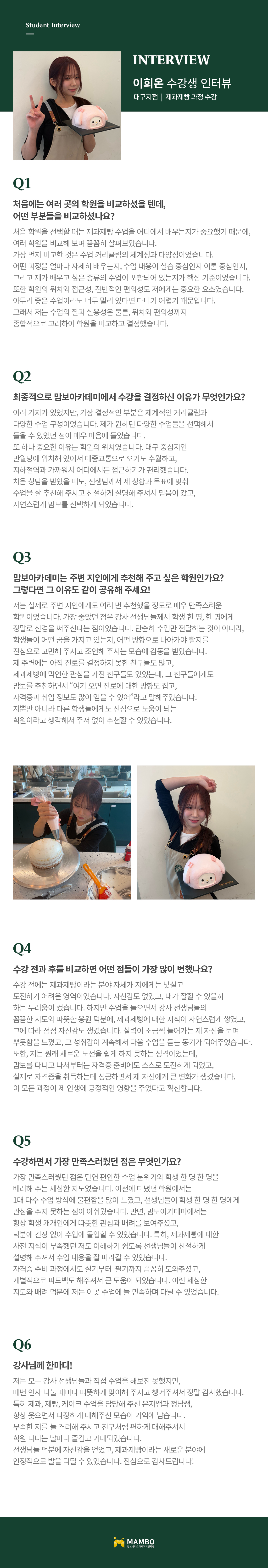 맘보학원과 함께 한 수강생들과 협약업체 실무자들의 인터뷰 입니다.
